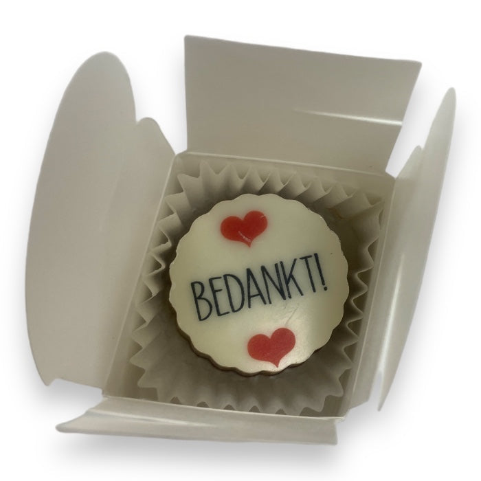 Un magnifique cadeau d'affaires. Bonbons avec votre logo, fabriqués à partir du meilleur chocolat belge avec un délicieux fourrage praliné. Contenu 1 pièces. Teneur en poids d'environ 12 grammes par bonbon