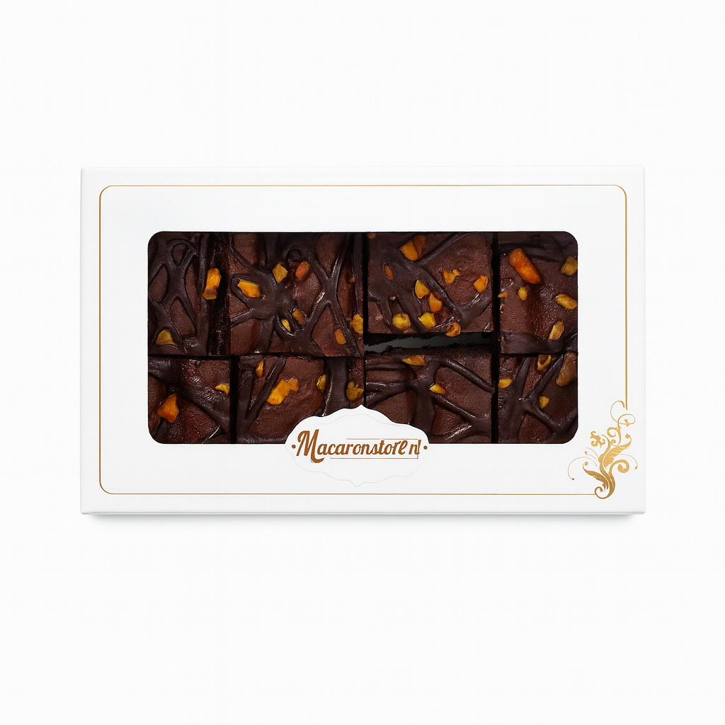 Klassieke brownie met een overheerlijke chocoladecrème en stukjes walnoot.