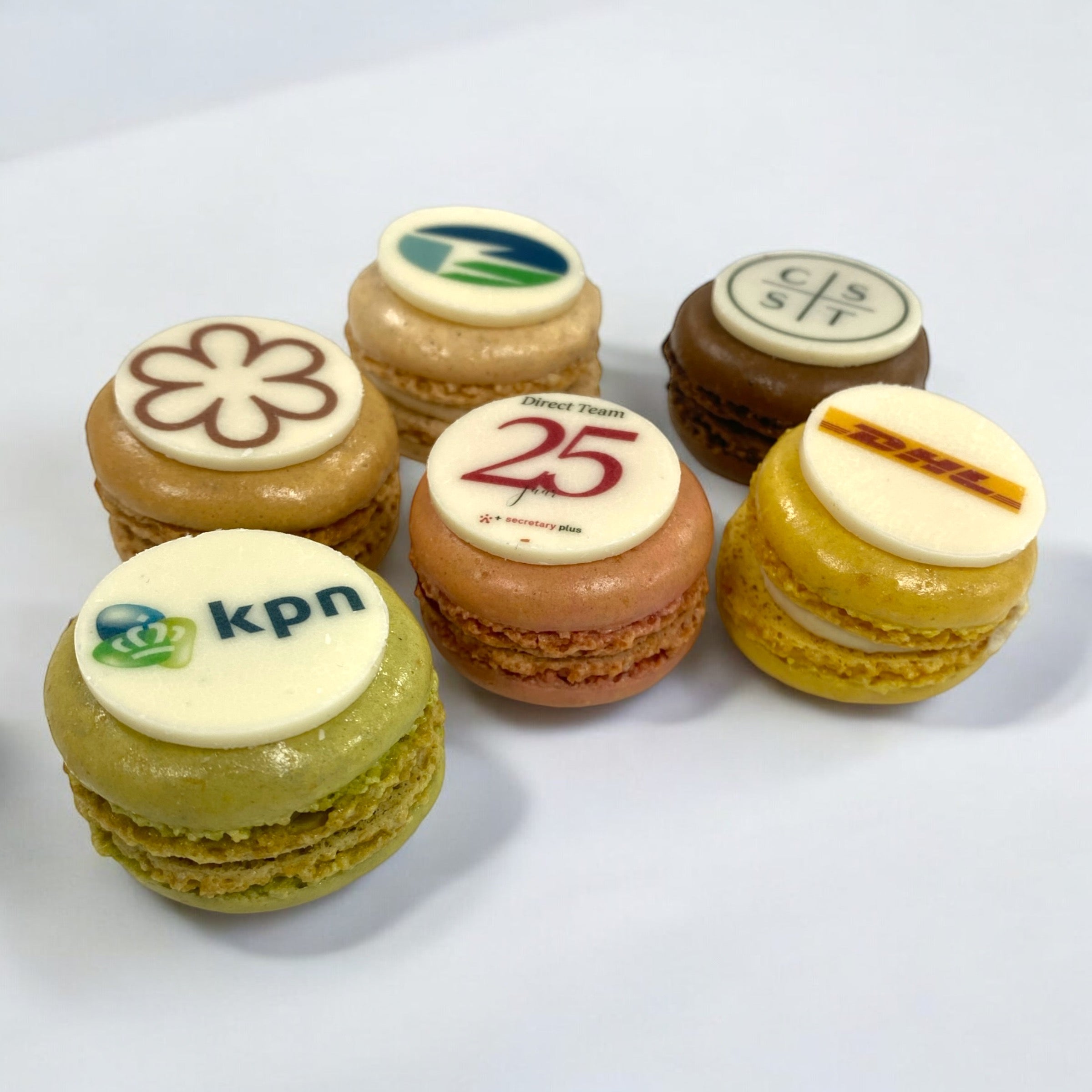 Les macarons sont non seulement très savoureux, mais ils sont aussi fantastiques. Et nous pouvons mettre votre logo sur le macaron. Ce qui en fait un excellent cadeau. Par exemple lors d'un salon ou d'une réunion.