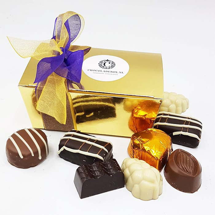 125 grammes de bonbons belges dans une luxueuse boîte à bonbons dorée